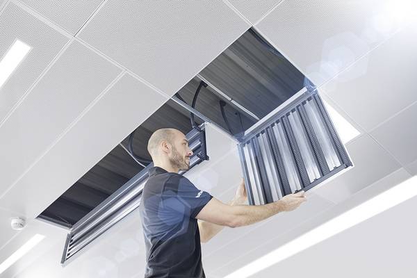 Heiz- und Kühldecke: Bei den Black System Hochleistungsmodulen werden die bewährten Register mit rollierten Wärmeleitblechen und durchgängigen Trägerplatten aus Aluminium kombiniert. Das System nutzt die druckabfall- und strömungstechnischen Vorteile der Register sowie die hohe Wärmeleitfähigkeit des Aluminiums. Die flächige Verklebung garantiert eine einfache und schnelle Montage in verschiedene Deckensysteme. Durch die reduzierte Anschlusstechnik sinken die Kosten pro m² installierter Decke.