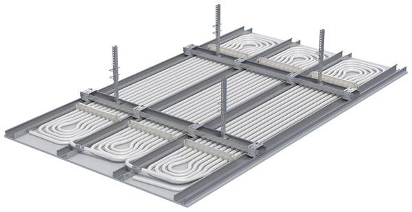 Bei den Hochleistungsmodulen wird das korrosionsbeständige Polypropylen-Rohr des Registers von allen Seiten mit Aluminium umschlossen. So wird die Energie in die Breite verteilt und der Raum großflächig mittels der Deckenplatte klimatisiert. Die Module können zum Beispiel in Metallkassettendecken als Klemm- oder Bandrastersystem und in thermisch aktiven Metalldeckensegeln eingebracht werden.