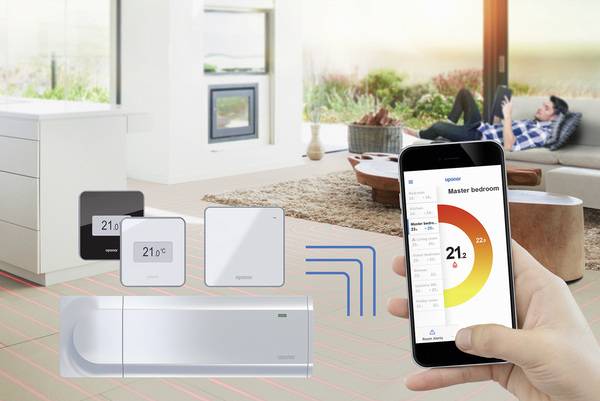 Regelung: Das Smarthome Regelsystem Auraconnect für Heizkörper und Fußbodenheizungen ermöglicht eine intelligente und energiesparende Heizungssteuerung unter anderem per Smartphone. Es besteht aus frei miteinander kombinierbaren Komponenten wie Thermostatköpfen, Raumthermostaten, Zentralreglern und Schaltleisten für Fußbodenheizungen. Die Konfiguration erfolgt schnell und einfach per App.