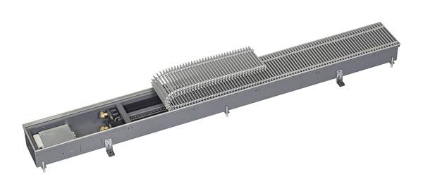 Unterflurkonvektoren: Beim Konvektor Katherm QK 190 / QK 215 mit Querstromventilator wurden bei höherer Leistungsabgabe die Abmessungen verringert. Er zeichnet sich durch eine Wärmeleistung von 0,4 bis 6,0 kW bei einer Kanalbreite von 190 bzw. 215 mm aus. Durch eine verbesserte Abstimmung der einzelnen Komponenten wurden zudem die Geräuschemissionen weiter gesenkt. Die hohe Effizienz ermöglicht weiterhin die Kombination mit modernen Niedertemperatur-Heizsystemen.