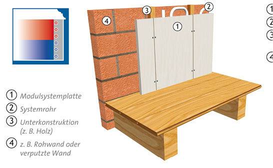 Weiterhin lassen sich Flächenheizungssysteme auch neu in vorhandene Räume integrieren, wobei sich Dünnschichtsysteme vor allem für den Einsatz bei geringen Aufbauhöhen eignen. Bei derartigen Teilsanierungen können auch bestehende Heizkörper gegen Wandheizungsmodule ausgetauscht werden. Dies bietet nicht nur eine höhere thermische Behaglichkeit für die Nutzer, sondern behebt im Fall von Heizkörpernischen auch Wärmebrücken in der Gebäudehülle.