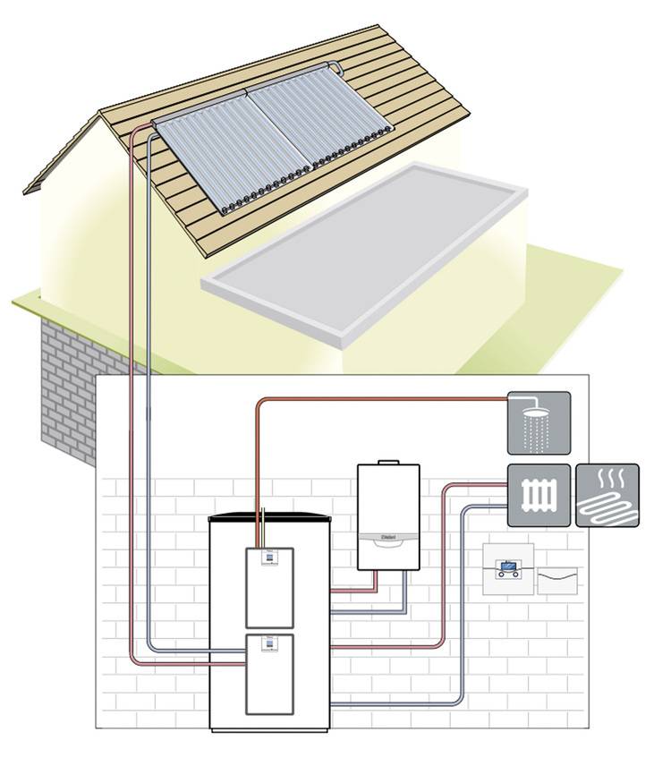 Um hier ein Gleichgewicht zwischen Investition und Ertrag zu finden, ist vor allen Dingen auch die Verwendung der teils enormen Wärmeüberschüsse im Sommer relevant. Hier ist in erster Linie die Schwimmbaderwärmung von Interesse. Denn selbst Speicher mit rund 1000 l Fassungsvermögen geraten bei großen Kollektorflächen im Sommerbetrieb schnell an ihre Grenzen der Wärmeaufnahme.