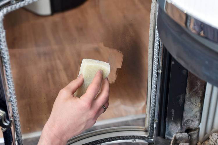 Schmutz auf der Sichtscheibe ist am besten mit feuchtem Zeitungspapier und Holzasche zu reinigen. Stark festgebrannter Ruß lässt sich leicht mit einem haushaltüblichen Fettreiniger säubern: Kurz einsprühen, einwirken lassen und mit einem weichen Lappen abreiben.