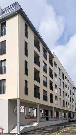 Energieeffizienz ist oft gleichbedeutend mit Energiesparen – oder Energie smart nutzen, wenn sie ohnehin anfällt, wie in dem "Boarding House" in der Metallstrasse 16-20 in St. Gallen (Schweiz). Der fünfgeschossige Bau ist gemischt genutzt: Im Erdgeschoss befinden sich eine Bäckerei mit Café/Restaurant sowie ein Empfang, von dem aus die 56 möblierten Appartements zugänglich sind. Das Dachgeschoss bietet einen Wellnessbereich und eine Dachterrasse.