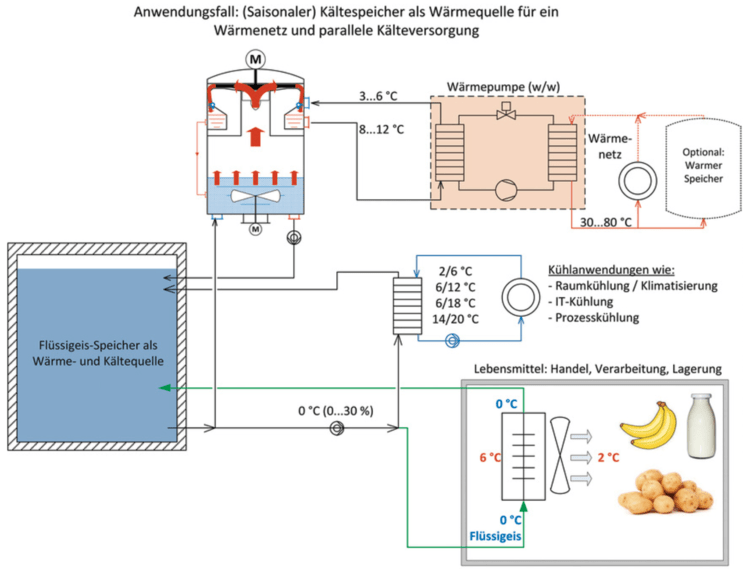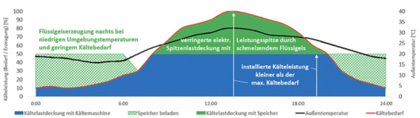 In diesem Prozess wird durch den Phasenwechsel von Wasser eine erhebliche Verbesserung der Kühlkapazität pro m³ erreicht. Das flüssige Eis (0 °C mit 50 Prozent Eisanteil) speichert siebenmal besser als die mit üblichen Kaltwassersätzen (6 °C/12 °C) gekoppelten Kaltwasserspeicher, wodurch wesentlich mehr Kälteenergie im gleichen Volumen vorgehalten werden kann.