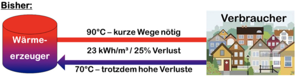 Da der Wärmetransport auf dem Temperaturniveau des Seewassers erfolgt und der Rücklauf zum See mit 0 °C, kennt diese Art keine thermischen Verluste. Die Transportkapazität ist zweimal höher als in einem herkömmlichen Fernwärmerohr mit 90 °C im Vor- und 70 °C im Rücklauf, was auch den elektrischen Aufwand in Grenzen hält.