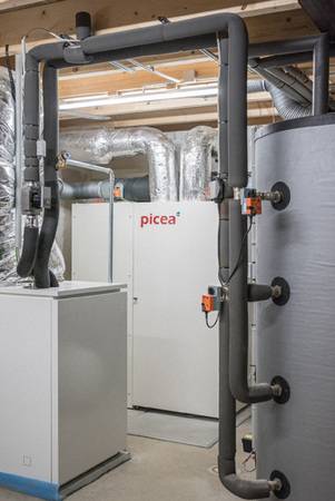 Die Abwärme der Elektrolyse wird in einen Warmwasserspeicher des Hauses ausgekoppelt, ein Warmwasserspeicher (500l) ist im Leistungsumfang von Picea enthalten. Sie kann aber auch in einen bestehenden Speicher im Haus eingetragen werden. Gängige Warmwasserspeicher haben einen Eingang zur Einbindung einer Solarthermie Anlage. Über diesen Anschluss koppelt Picea die Wärme ein. Es handelt sich um ein einfaches Kupferrohr, das angeschlossen wird.