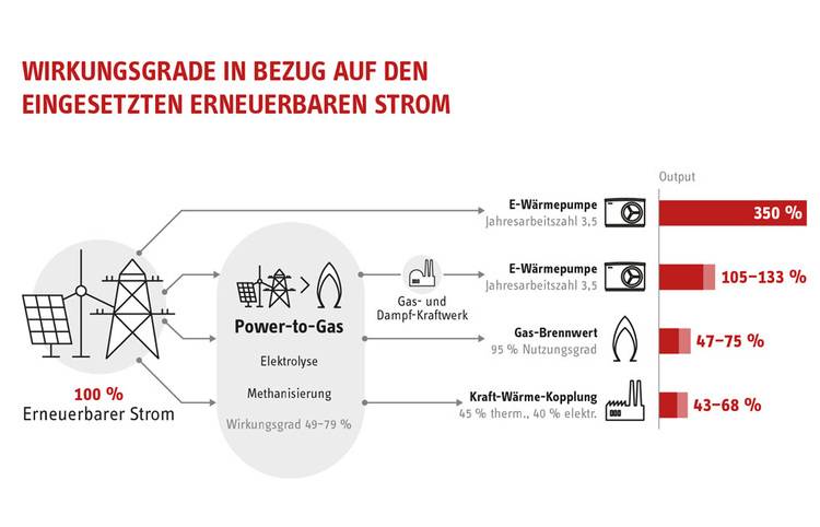 Grüner Wasserstoff wird auch eine zentrale Rolle als Zwischenspeicher spielen, indem in Zeiten mit überschüssiger Produktion erneuerbaren Stroms - über den Umweg der Elektrolyse - das umweltfreundliche Gas zur späteren Verstromung in Gaskraftwerken gespeichert wird. „Wenn wir Wasserstoff verheizen, erzeugen wir nicht nur einen enormen Nachfrageschub, den wir nicht decken können, sondern generieren auch einen Preisanstieg“, so Schulz. Das Fraunhofer spreche hier immerhin von einem Plus von bis zu 60 Prozent. Zudem sei Wasserstoff bei der Wärmeerzeugung auch vergleichsweise ineffizient.
