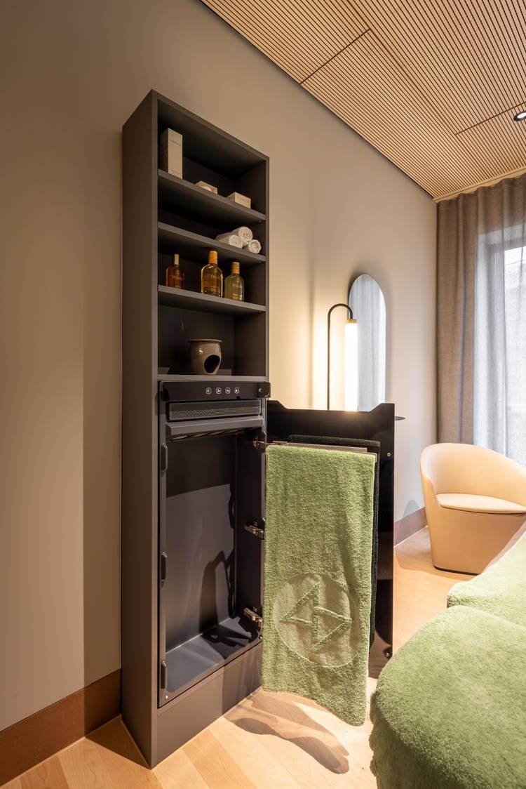 Zehnder Zenia wird in allen Behandlungsräumen im Spa-Bereich eingesetzt. Und obgleich alle Behandlungsliegen über eine integrierte Heizung verfügen, schätzen es die Gäste, wenn sie mit einem gewärmten Badetuch bedeckt werden. „Einige Behandlungen beinhalten auch eine Packung oder ein Peeling. Da freut sich der Gast natürlich über eine Duschmöglichkeit im Raum und über ein angenehm vorgewärmtes Handtuch zum Abtrocknen“, führt Nina Suma aus. „Und als netter Nebeneffekt wird während der Spa-Behandlung auch noch die nasse Badekleidung des Gastes getrocknet“, schmunzelt Nina Suma.