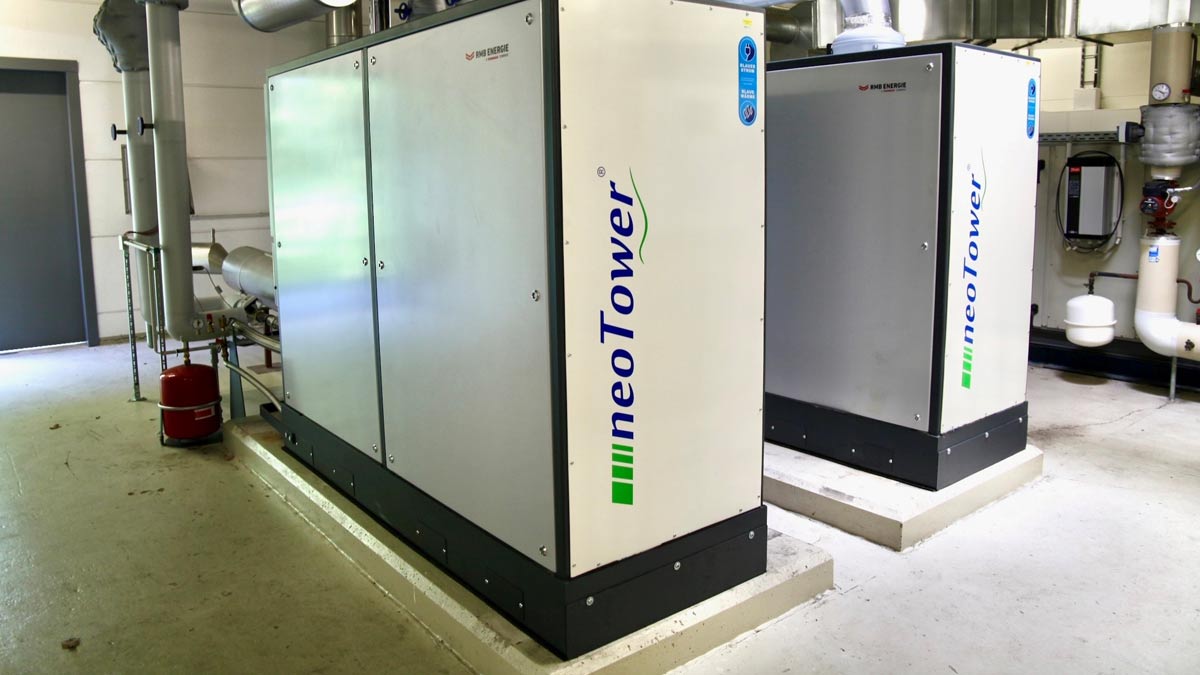 Die beiden kaskadierten NeoTower-Blockheizkraftwerke mit je bis zu 50 kW elektrischer Leistung ersetzten ein veraltetes Blockheizkraftwerk.