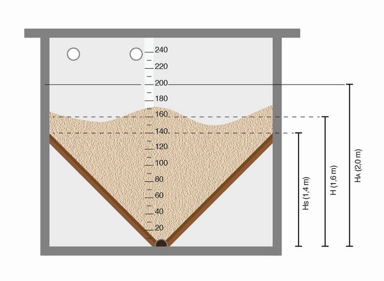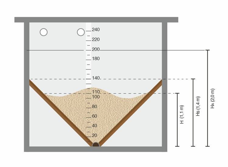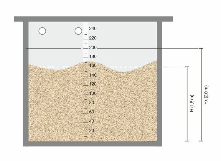 - Füllhöhe nach Erstbefüllung: HA = 2 m