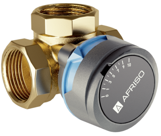 Die Lösung ist so genial wie simpel. Da systembedingt immer ein erheblicher Teil des Rücklaufwassers aus der Flächenheizung genutzt werden soll, wird eine Rohrverbindung mit einem einstellbaren Ventil zwischen Vor- und Rücklauf eingebaut, der sogenannte Bypass. Über diese Strecke wird der ohnehin notwendige Anteil an kühlem Rücklaufwasser transportiert und mit dem Bypassventil dieser Kurzschlussstrecke einreguliert. Der Mischer wird für den eher geringen, vom Kessel kommenden Anteil dimensioniert. Der Drehschieber des deutlich kleineren Dreiwegemischers steht dann für die gesamte Regelarbeit zur Verfügung. 60 Grad Schwenkarbeit sorgen für eine gehörige Portion an Genauigkeit im Ergebnis. Statt für 1.000 l/h ohne den cleveren Bypass wird der Dreiwegemischer hier nur noch für 143 l/h dimensioniert. Der Bypass liefert durch eine Festeinstellung die Differenz 857 l/h zum Gemisch ständig dazu. Das hätte der Mischer in der Variante ohne Bypass als Mindestmenge ebenfalls aus dem Rücklauf schöpfen müssen.