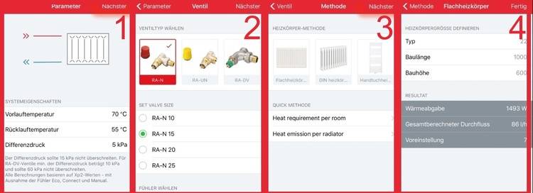 Diese Abkürzung will ich hier nicht zerlegen und unnötig infrage stellen. Klar dürfte aber auch sein, dass eine solche Vorgehensweise nicht berücksichtigt, ob ein Heizkörper pumpennah oder weit entfernt von der Pumpe installiert ist. Der Heizkörper aus dem Beispiel der App könnte für ein kleines Einfamilienhaus ausreichend genau bestimmt sein.