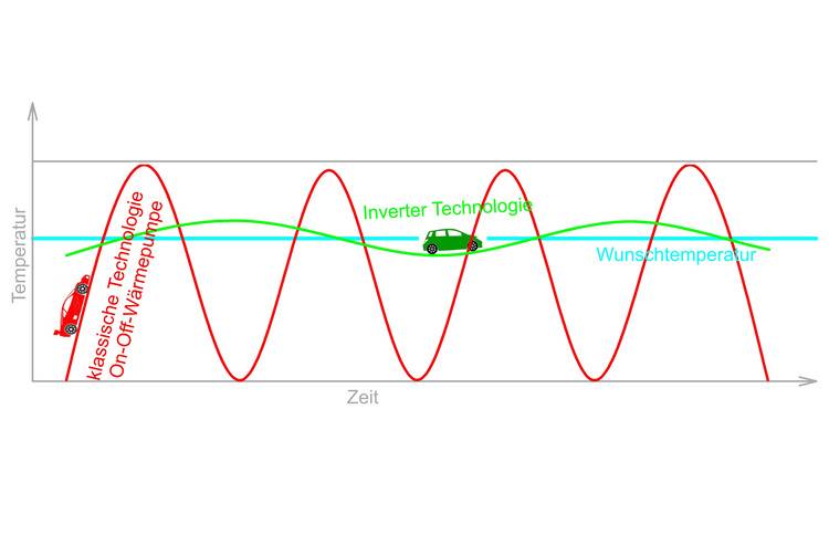 Die Regelbarkeit einer Inverter-Wärmepumpe ist vorteilhaft gegenüber einer On-Off-Wärmepumpe.