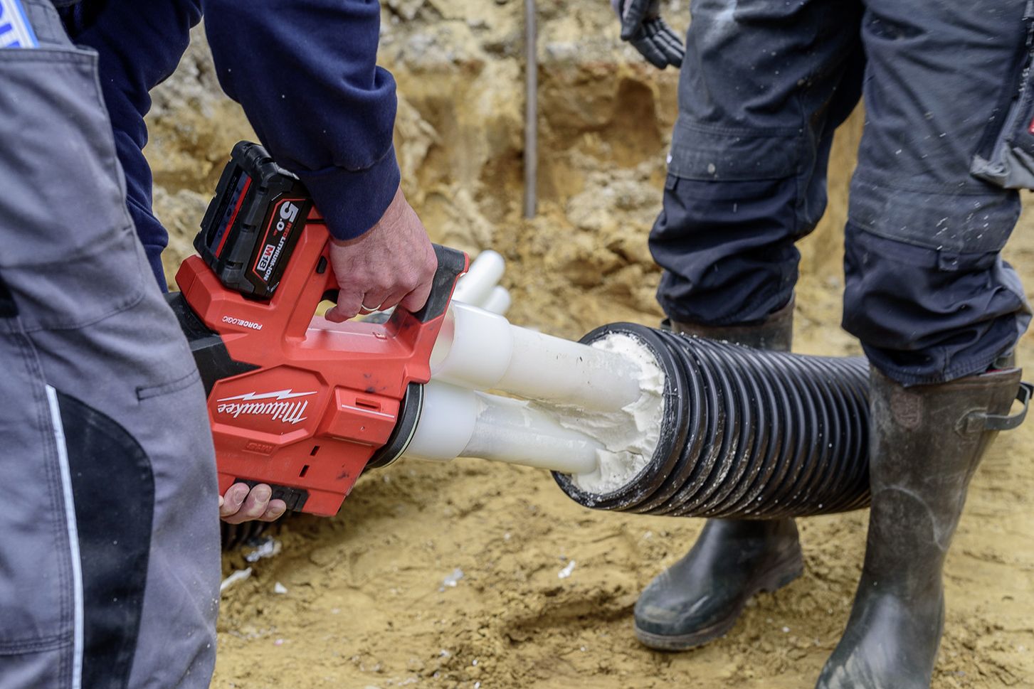 So lassen sich Kunststoffrohre als Rollenware leichter und vor allem mit deutlich weniger Verbindungsstellen im Erdreich verlegen. Gleichzeitig sinkt der Planungsaufwand für die Trassenführung, weil auf Hindernisse wie Bäume oder querende Leitungen auch vor Ort noch flexibel reagiert werden kann.