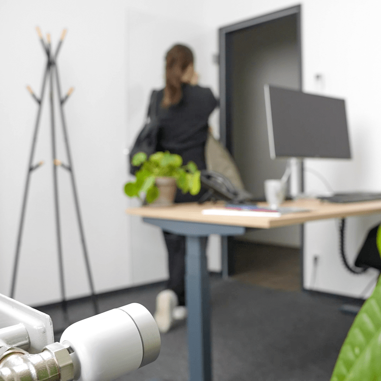Über die offene Schnittstelle der Steuerungssoftware verknüpften die IT-Experten die Thermostate außerdem mit einem Raumbuchungssystem, das das Unternehmen selbst entwickelt hat. Mit ihm kann jeder Mitarbeitende einen Arbeitsplatz oder einen Besprechungsraum selbstständig reservieren. Die Kombination aus Buchungssoftware und digitalen Thermostaten ermöglicht eine bedarfsgerechte Heizungssteuerung. Räume werden nur dann auf Temperatur gebracht, wenn sie reserviert sind. Andernfalls arbeitet die Heizung im Sparmodus.