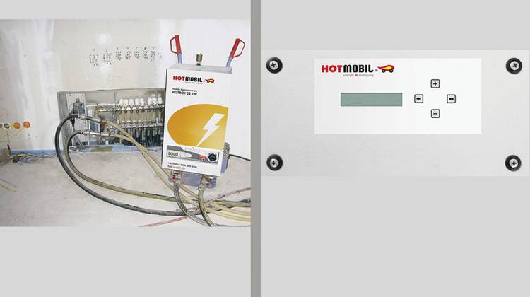 Zur Automatisierung des Aufheizprozesses gibt es eine mobile Regeleinheit. Über einen definierten Zeitraum ermöglicht die Regeleinheit Hotcontrol MRE die Estrichaufheizung nach DIN EN 1264 mit verschiedenen Soll-Temperaturen. Während des Heizbetriebes wird der Ist-Zustand überwacht; bei einer Abweichung von der Kennlinie gibt das Gerät eine Fehlermeldung aus. Zur Dokumentation speichert die Regeleinheit ein Messprotokoll, das über eine USB-Schnittstelle ausgelesen werden kann.