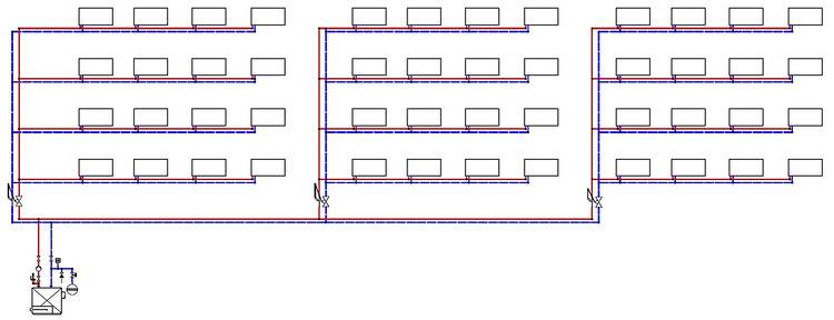 Wie groß der Druckverlust bis zu den jeweiligen Heizflächen ist, hängt von der Entfernung zwischen der Umwälzpumpe und dem Heizkörper ab. Deshalb wird eine Aufteilung des Netzes in die drei Zonen nah, mittel und weit empfohlen.