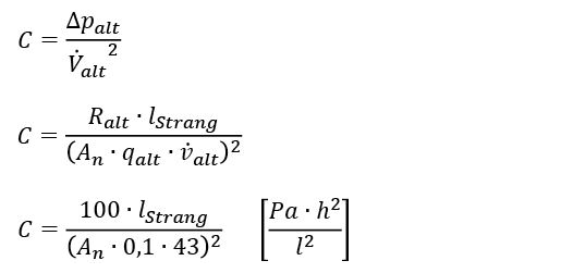 - Auslegungsdruckgefälle: Ralt = 100 Pa/m