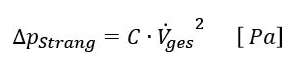 Mit dem aktuellen Auslegungsvolumenstrom lässt sich der Strangdruckverlust ermitteln:
