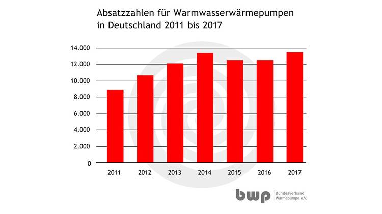 Auch der Absatz von Warmwasserwärmepumpen ist in 2017 im Vergleich zum Vorjahr um 8 Prozent gewachsen, es wurden 13.500 Geräte verkauft. Insgesamt wurden im vergangenen Jahr hierzulande somit 91.500 Wärmepumpen in Betrieb genommen.