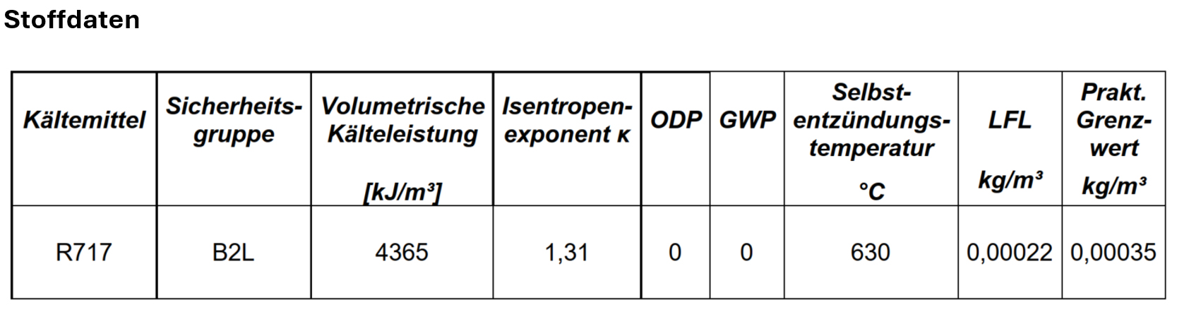 Obwohl Ammoniak ein natürliches und umweltfreundliches Kältemittel ist, müssen seine sicherheitstechnischen Eigenschaften bei der Planung und dem Betrieb von Anlagen berücksichtigt werden. Ammoniak ist nach EN 378 in die Sicherheitsklasse B2L eingestuft: