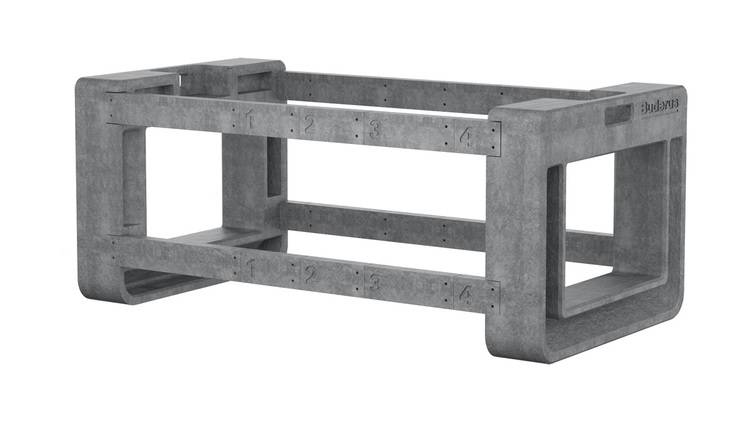 Das Fundament wird in einzelnen Teilen mit jeweils weniger als 27 Kilogramm geliefert – insgesamt wiegt es gerade einmal 67 Kilogramm. Dadurch lässt es sich gut transportieren. Aufwändiges Betonieren und die damit verbundene Trocknungszeit werden mit dem Fertigfundament überflüssig. Es besteht aus einem UV-beständigen, robusten und langlebigen Material.