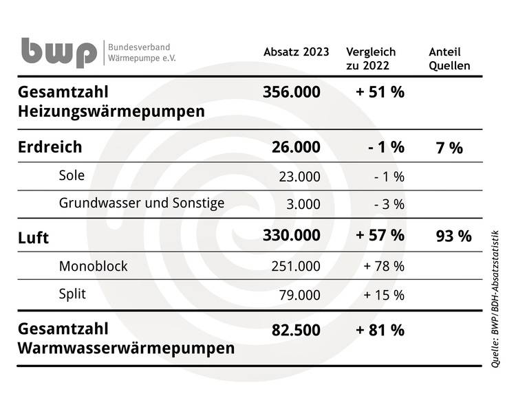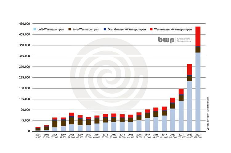 Anmerkung zu den Absatzzahlen (nachgetragen, 21.03.2024): Die BDH/BWP-Statistik erfasst mit „in den Markt gebracht“ über detaillierte Meldungen der Hersteller quasi das Verlassen des Werksgeländes und eilt damit den tatsächlichen Installation voraus. Auch wenn sich der Lagerbestand im Großhandel und bei Handwerksbetrieben ändert, ergeben sich Verschiebungen. In der Branche ist es ein offenes Geheimnis, dass einige Großhändler die Nachfrage im Jahr 2023 deutlich höher eingeschätzt hatten. Im Dezember 2023 lagen die Schätzungen für „Wärmepumpen in Regalen beim Großhandel und bei Heizungsbauern“ zwischen 65 000 bis 80 000 Stück. Zudem wurden Anfang 2023 Wärmepumpen ausgeliefert, die die Kunden schon gerne vor dem Jahreswechsel 2022/23 in Betrieb genommen hätten. Diese Verschiebungen erklären einen Teil der Diskrepanz zwischen Absatzrekord und Unzufriedenheit über die stockende Nachfrage bei den Herstellern.