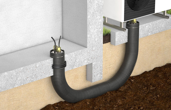 Beide Varianten werden als anschlussfertige Komplettsets ausgeliefert und zeichnen sich unter anderem durch die Möglichkeit einer einfachen und schnellen Ein-Personen-Montage aus. Die Lieferung erfolgt jeweils inklusive der erforderlichen Abdichtung zum Gebäude. Die Doyma-Anschlusssets sind in DN 32 (in den Längen 3 und 5 Meter) sowie in DN 40 (in den Längen: 10, 15 und 20 m) erhältlich. Sie ermöglichen so auch den unkomplizierten Anschluss von Wärmepumpen, die weit vom Wohnhaus entfernt stehen.