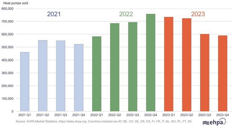 Nach der durch die russische Invasion in der Ukraine ausgelösten Energiekrise haben die Regierungen im Jahr 2022 die Unterstützung für die Anschaffung von Wärmepumpen erhöht. Im Jahr 2023 wurden viele dieser Maßnahmen eingeschränkt oder gestrichen. Dies war beispielsweise in Italien der Fall, wo es zwischen 2022 und 2023 einen der größten Umsatzrückgänge gab.
