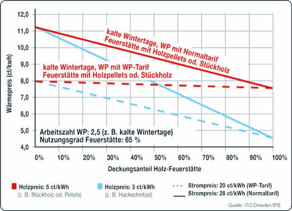 Die Wirtschaftlichkeit der hier betrachteten Kombination aus Wärmepumpe und Holzfeuerstätte hängt wesentlich von den konkreten Randbedingungen ab – insbesondere: