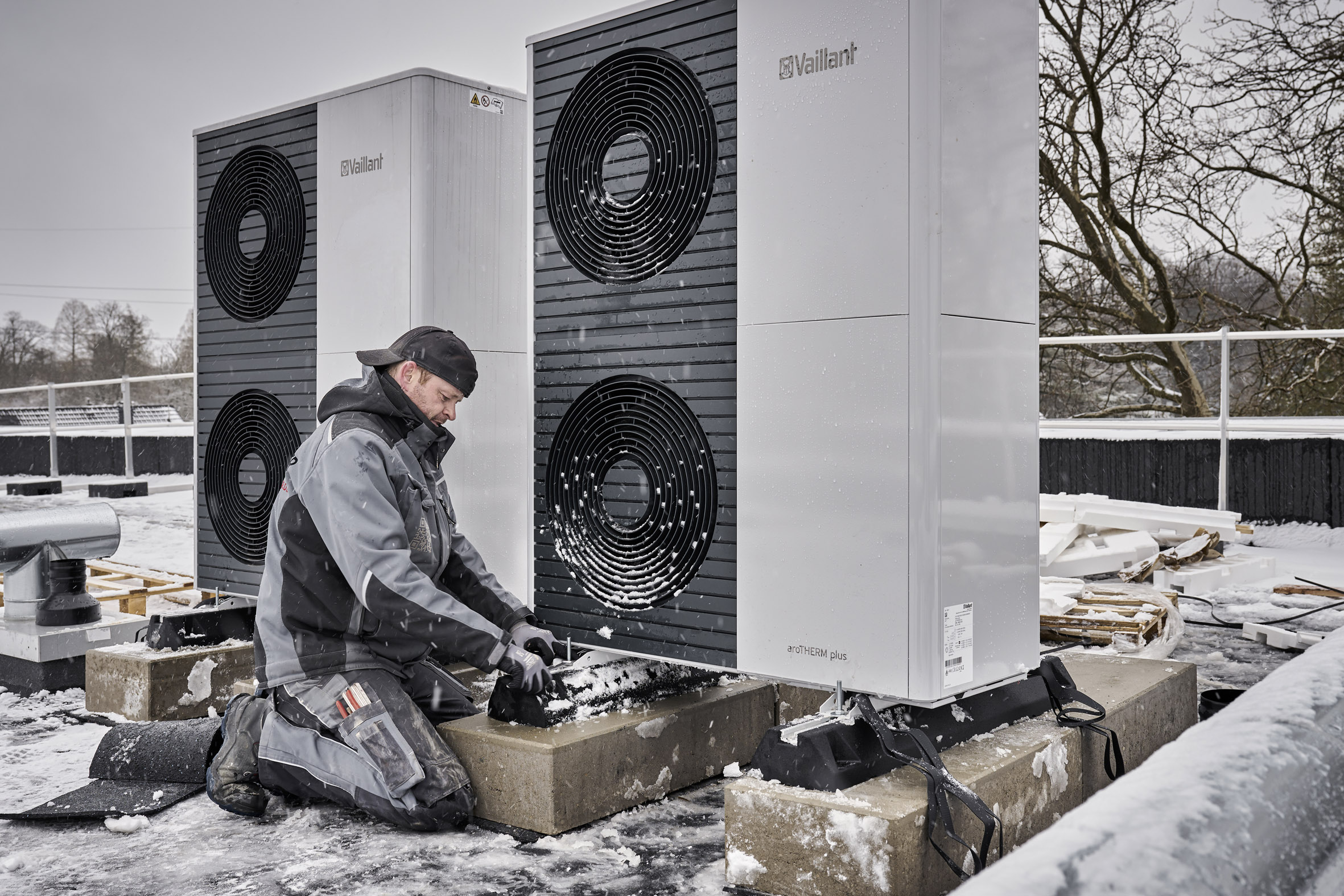 Einzel-Wärmepumpen mit geringer Heizleistung bis ca. 12 kW werden in der Wohnungswirtschaft bei energetischen Sanierungen kaum eine Rolle spielen. Allenfalls im kleinen Neubau mit maximal drei Wohneinheiten können diese Geräte eingesetzt werden. Eine wichtige Funktion erfüllen sie dennoch – und zwar in der Kaskadierung. Einzel-Wärmepumpen mit größerer Leistung von rund 15 kW wie beispielsweise die aroTHERM perform von Vaillant sind dagegen ideal für die Bestandssanierung geeignet. Sie sind marktüblich bis ca. 20 kW verfügbar und erschließen so einen Großteil energetisch sanierter Mehrfamilienhäuser.
