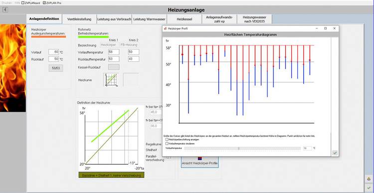 - Die Heizwasser-Temperaturempfindlichkeit der Wärmepumpe im Hinblick auf ihre Effizienz wurde schon hervorgehoben. Zur Auslegung gehört unbedingt eine Heizlastberechnung nach DIN TS 12831, wie sie zum Beispiel mit ZVPlan gemacht werden kann. Der Zeitaufwand liegt mit etwas Übung bei unter einer Stunde (zzgl. Datenaufnahme). Hinweis: Es hat keinen Sinn, die Heizlast schönzurechnen. Die übliche Bezugsgröße für die Innenraumtemperatur ist 20 °C, die in den meisten Fällen (deutlich) zu niedrig ist. Fachhandwerker, die damit rechnen, riskieren, dass der Kunde später die Heizkurveneinstellung verändert und sich dadurch die Jahresarbeitszahl verschlechtert. Tipp: Um sich abzusichern, sollte der Fachmann die Innenraumtemperatur mit dem Kunden schriftlich vereinbaren. Dafür gibt es entsprechende Vordrucke. Sollte so eine Absprache nicht möglich sein, sollte mit einem pauschalen Zuschlag auf die „üblichen“ Temperaturen gerechnet werden. Die DIN TS 12831 gibt hier einen Freiraum von bis zu 3 K.