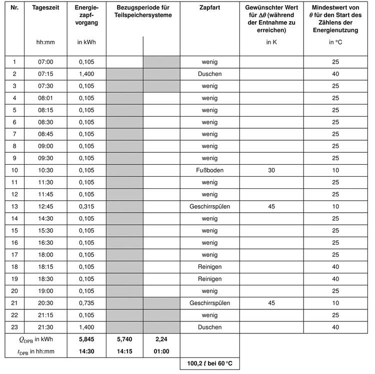 Trinkwarmwasserbedarf nach bekannten Zapfprofilen