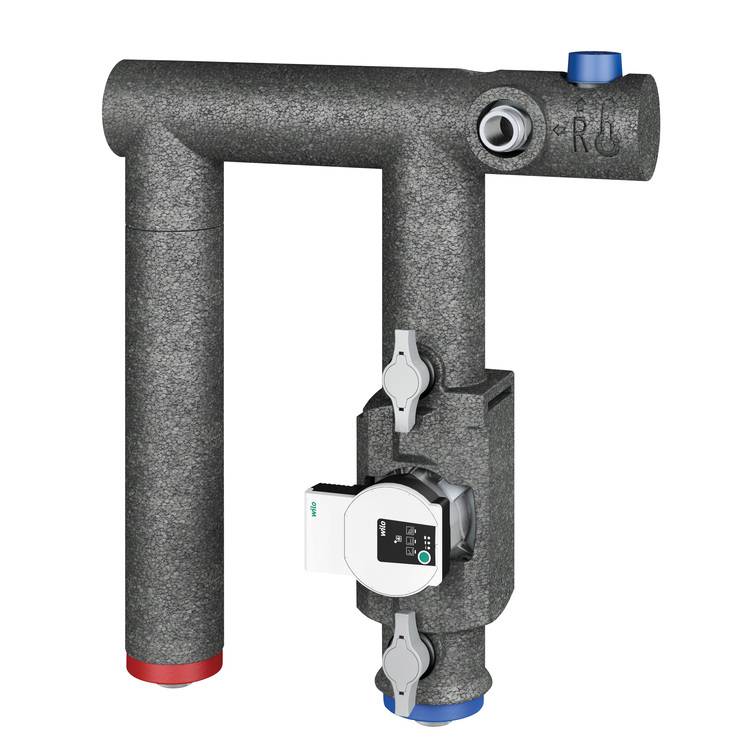 Bei System E Comfort liegt die komplette Anlagenhydraulik bereits betriebsfertig vor. Alle Komponenten sind aufeinander abgestimmt, eine hydraulische Weiche sorgt für die Entkoppelung von Erzeuger- und Verbraucherkreis. Der hydraulische Anschluss an die Wärmepumpe erfolgt mit einem flexiblen Verbindungsset. Mit vorkonfektionierten und vorverdrahteten Modulen (Sonderzubehör) lässt sich die Anlagenhydraulik um bis zu drei Heizkreise erweitern.