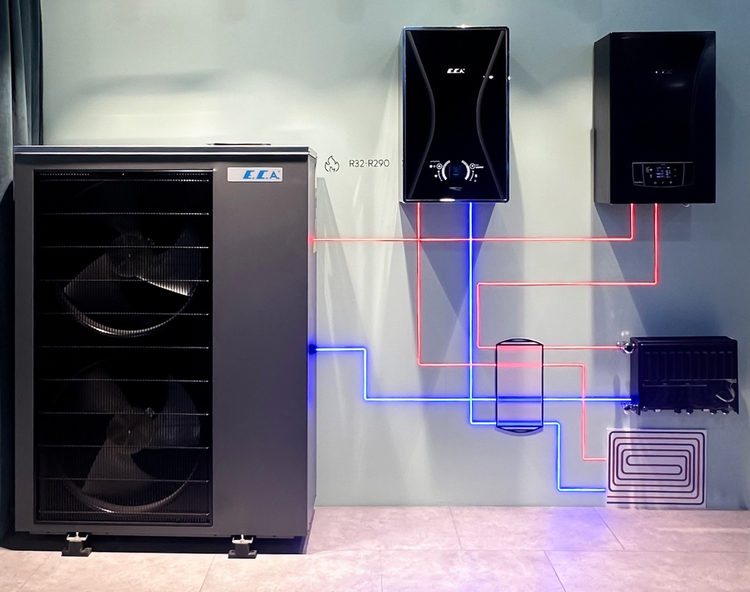 Geschmackvolles Design und hohes Energiesparpotenzial zeichnen das Heizungs- und Sanitär-Portfolio von E.C.A. aus. Mit der Luft-Wasser-Wärmepumpe X-CURE eröffnet das Unternehmen seiner Käuferschaft eine wichtige neue Produktgruppe. Das Modell passt perfekt zur X-AIR Niedrigtemperatur-Heizkörperfamilie und ermöglicht so besonders ressourcenschonendes Heizen in Ein- bis Zweifamilienhäusern. Die Wärmepumpe läuft mit dem klimafreundlichen Kühlmittel R290, aufgrund ihrer Monoblock-Bauweise lässt sie sich ohne Kälteschein installieren. Sie erscheint in zwei Größen: Mit 8 kW Leistung (850 × 1165 × 370 mm) für Einfamilienhäuser und mit 15 kW Leistung (HBT 1450 × 1085 × 390 mm) für kleinere Mehrfamilienhäuser.