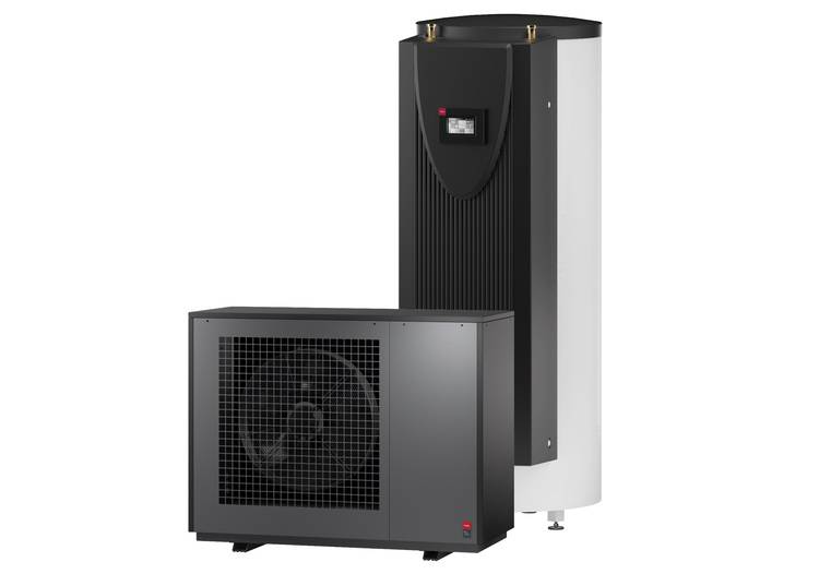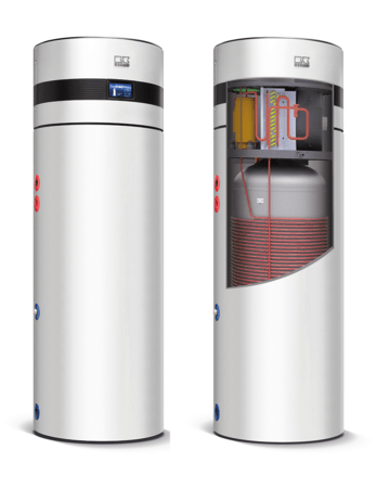 Der emaillierte Warmwasserspeicher fasst 300 Liter. Da eine Wassertemperatur von bis zu 75 °C erreicht wird, stellt die RBW auch große Zapfmengen bereit. Dabei arbeitet sie durch den Rollkolbenkompressor sehr leise. Das kalte Wasser wird unten in den Speicher geführt, um ein Durchmischen zu minimieren. Der Wärmetauscher sitzt außen, sodass der optimale Wärmeübergang realisiert wird, speziell geformte Lamellen unterstützen an dieser Stelle. Als Kältemittel wird R290 eingesetzt.