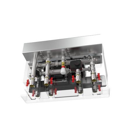 Die Hybrid-Hydraulikgruppen sind für eine schnelle und platzsparende Installation konzipiert: Sie werden auf der Rückseite des Brennwertkessels montiert, das macht eine separate Wärmepumpen-Inneneinheit überflüssig. Die beiden Sets sind anschlusskompatibel zum jeweiligen Heizkessel. Ein integrierter Filter schützt das System vor Verunreinigungen.