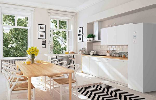 Dank der knappen Abmessungen kann das Kombi-Hydromodul mit Waschmaschine und Kühlschrank problemlos in einer Küchenzeile oder im Hauswirtschaftsraum untergebracht werden. Bei Bedarf lässt sich auf dem 1640 mm hohen Gehäuse sogar noch ein Gerät zur kontrollierten Wohnraumlüftung installieren – und das mit ausreichend Luft nach oben für eine unkomplizierte Montage.