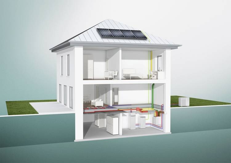 Die nächste Ausbaustufe des Systems rund um eine Luft-Wasser-Wärmepumpe umfasst die kontrollierte Wohnungslüftung. Auch deren Strombedarf kann idealerweise in die Bedarfsberechnung der Photovoltaikanlage und des Batteriespeichers einfließen. Ansonsten ist darauf zu achten, dass beim Einsatz einer kontrollierten Wohnungslüftung der Heizbedarf des Gebäudes entsprechend niedriger ausfällt und die Wärmepumpe daraufhin angepasst wird.