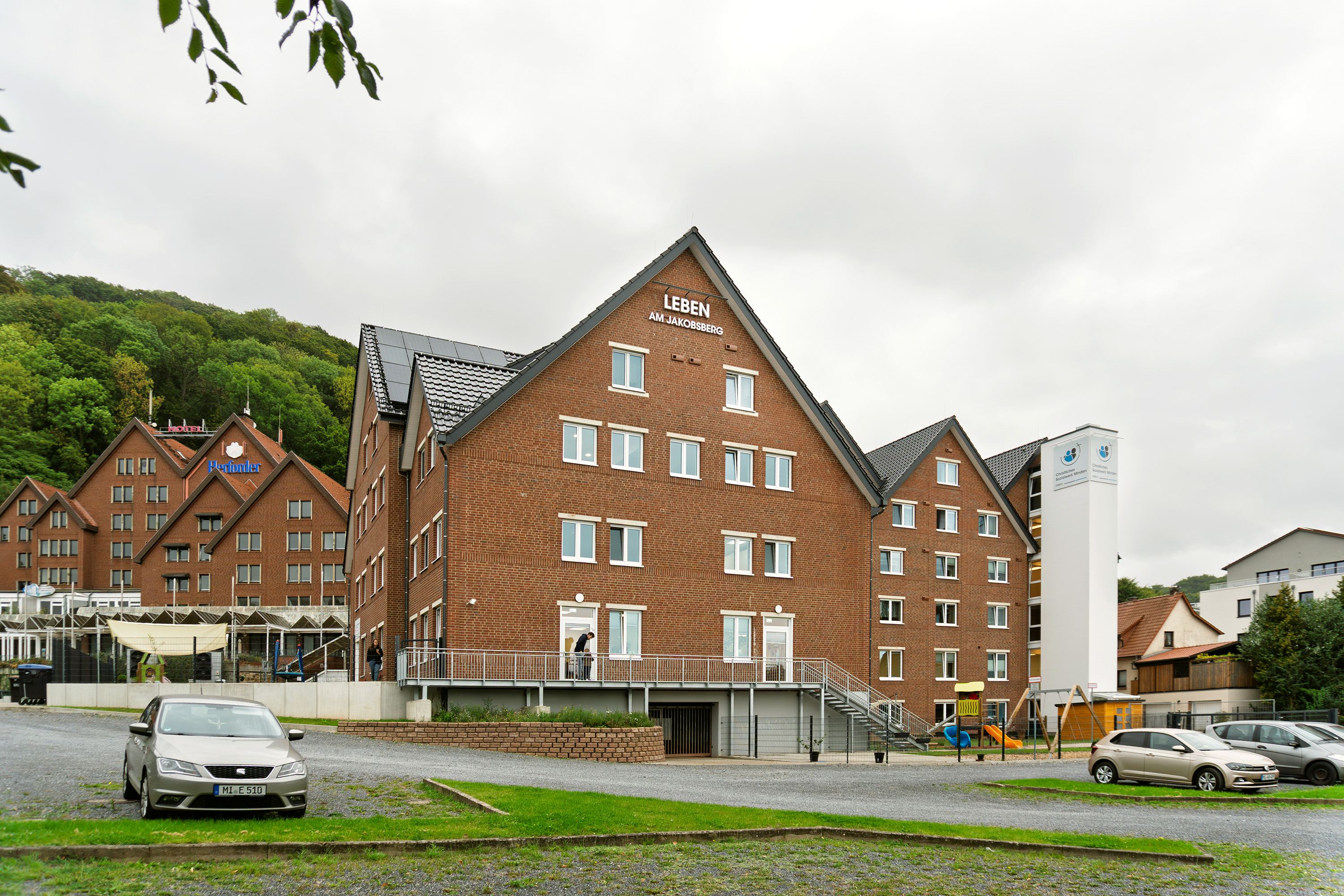 Im Rahmen einer umfassenden Kernsanierung wurde das ehemalige Ärztehaus in Porta Westfalica zu einem modernen Objekt mit 41 Service-Wohneinheiten, einer Kindertagesstätte und einem ambulanten Pflegedienst umgebaut. Die Liegenschaft „Am Jakobsberg“ verfügt über eine Nutzfläche von rund 3.800 Quadratmetern und wird generationsübergreifend genutzt. Die Anforderungen an Komfort, Sicherheit und Energieeffizienz sind hoch, insbesondere aufgrund der heterogenen Nutzerstruktur mit älteren Menschen und Kleinkindern.