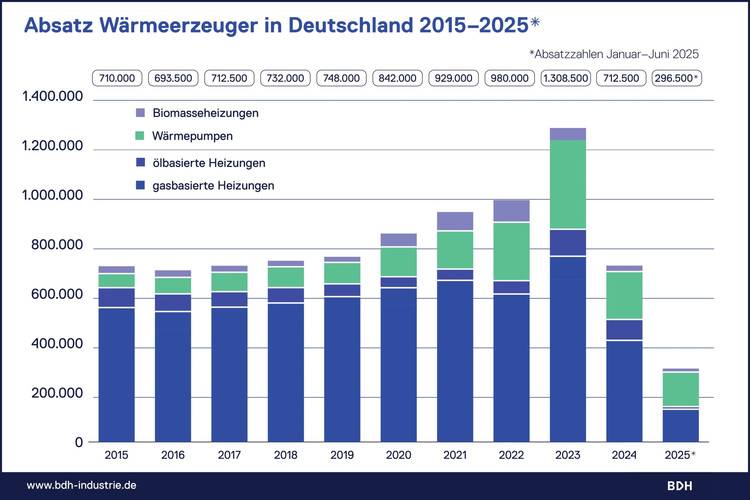 Die Prognosen der Industrieverbände gehen für 2025 von einem weiteren Rückgang des Gesamtmarkts um bis zu 13 % aus. Bei rund 618.000 Heizgeräten rechnen wir mit einem Wärmepumpenabsatz zwischen 250.000 und 290.000 Stück – eine Größenordnung, die immerhin über unseren Erwartungen liegt.
