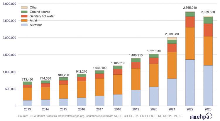 Thomas Nowak: Ich möchte noch etwas früher beginnen. Mit einem europaweiten Wachstum von 34 % haben wir im Jahr 2021 bei den Heizungs- und Trinkwasser-Wärmepumpen einen phänomenalen Aufschwung erlebt. Das Jahr 2022 ist dann noch besser gelaufen, als man zunächst gedacht hatte. Am Ende konnte der höchste Zuwachs verzeichnet werden. Das Jahr endete mit einem satten Plus von 39 %. Mitgezählt werden hier übrigens auch Luft-Luft-Wärmepumpen, die in vielen Ländern eine deutlich größere Rolle spielen als in Deutschland.