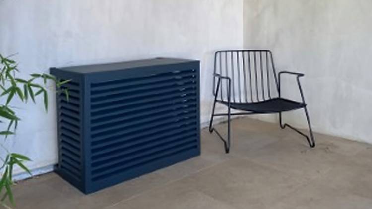 Eine Verkleidung bietet Schutz für die Wärmepumpen-Außeneinheit. Das französische Unternehmen Decoclim aus der Nähe von Saint Tropez in der Provence bietet diese Verkleidungen aus Holz oder Aluminium für viele Marken an. Laut Decoclim lässt sie sich einfach montieren und auch wieder entfernen. Mit einer integrierten Dämmung verringert sich laut Decoclim der Geräuschpegel um zehn bis 30 Prozent.