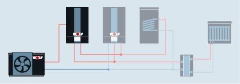 Bis zu 30 Jahre alte fossile Wärmeerzeuger können mit kompakter moderner Wärmepumpentechnik kombiniert werden, wenn die Inneneinheit der Wärmepumpe mit entsprechendem Zubehör ausgestattet ist.
