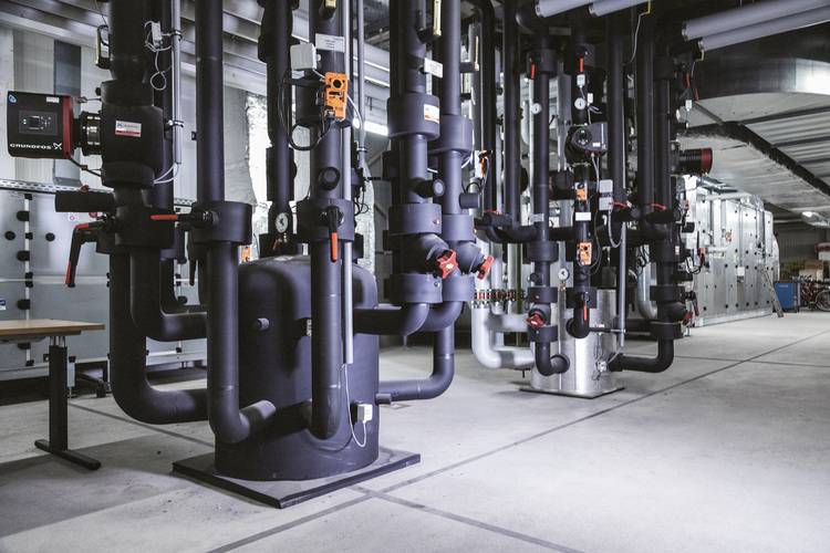 Erst im Spitzenlastfall und in den kalten Jahreszeiten ergänzen zusätzliche Wärmeerzeuger mit primären oder sekundären Energieträgern die Versorgung. Zudem erlauben es Wärmepumpen in Kombination mit einem passenden Verteilsystem, Gebäude passiv oder aktiv zu kühlen.