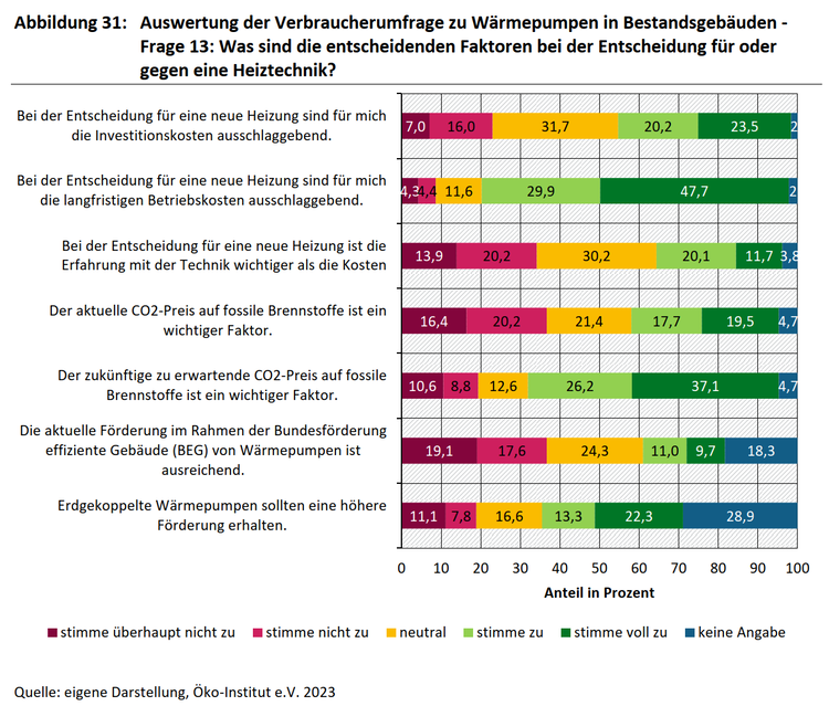 Die Veröffentlichung von Ergebnissen einer (nicht repräsentativen) Online-Endkundenumfrage zu Wärmepumpen in Bestandsgebäuden ist ebenfalls Bestandteil dieser UBA-Wärmepumpen-Studie. Mit der Umfrage sollten Unterstützungsbedarfe hinsichtlich Information und Finanzierung von Wärmepumpen in Bestandsgebäuden ermittelt werden. Sie zielte darauf ab den Stand des Wissens und bestehende Hemmnisse zu ermitteln, um daraus abzuleiten an welchen Stellen (zusätzliche) Informationen und Unterstützungen benötigt werden.