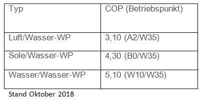 Sie lesen jetzt noch bei jeder COP-Angabe zu einem Betriebspunkt ein Kürzel. Und der schränkt die Messbedingungen ein.