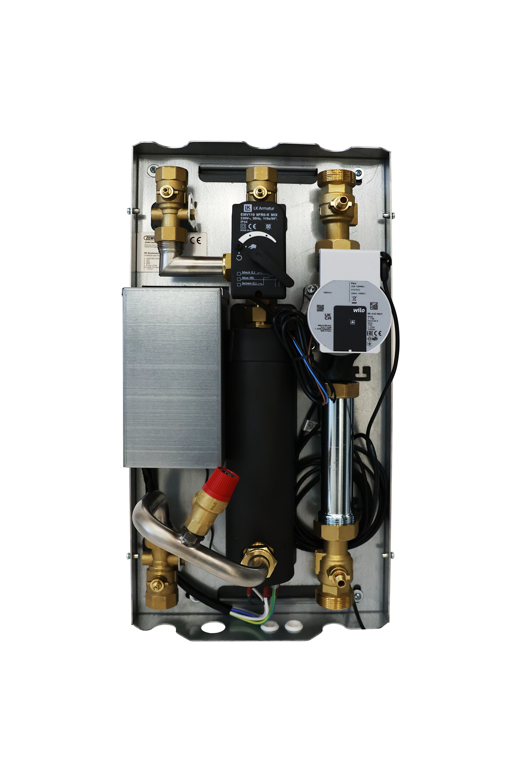 Während der Heizungsbauer die Hydraulikeinheit, Pumpen und Umschaltventile installiert, führt der Elektriker lediglich die 400-Volt-Zuleitung zur Box. Zusätzlich ist eine Hydraulikstation mit integriertem Durchlauferhitzer erhältlich.