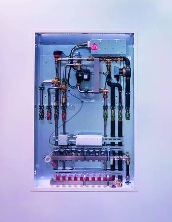 Freudenreich: Systeme mit 2-Leiter-Wohnungsstationenen eignen sich besonders für Wärmeerzeuger, die mehr als 55 °C Vorlauftemperatur bereitstellen können. Dann versorgt ein gemeinsamer Primärkreis-Vorlauf und -Rücklauf die Trinkwarmwasserbereitung und die Heizflächen. Bei Wärmepumpen dagegen bietet ein 4-Leiter-System Vorteile, bei denen getrennte Primärkreise für die Trinkwarmwasserbereitung und die Fußbodenheizung verlegt werden. Dadurch, dass die Fußbodenheizung durch den Niedertemperaturkreis versorgt wird, lassen sich für die Wärmepumpe gute Laufzeiten und eine hohe Wirtschaftlichkeit erzielen. Im Heizungsbetrieb arbeitet die Wärmepumpe optimal. Für die höheren Temperaturen der Trinkwarmwasserbereitung muss man etwas ungünstigere Betriebszustände der Wärmepumpe in Kauf nehmen, die aber dank der niedrigen Temperaturen der dezentralen Trinkwarmwasserbereitung immer noch effizient sind. Denn 50 °C Vorlauftemperatur reichen völlig aus, um 45 °C als Warmwasserzapftemperatur zu generieren. Wer das Einsparpotenzial von 2-Leiter-Systemen in Kombination mit einer Wärmepumpe nutzen will, plant mit einer Hybrid-Wohnungsstation. Hierbei erwärmt die Wärmepumpe das Heizwasser nur auf die für die Fußbodenheizung benötigte Temperatur. Den notwendigen Temperaturhub für das Warmwasser übernimmt ein elektrischer Durchlauferhitzer.